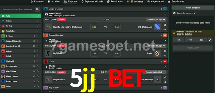 O 5jj bet oferece uma grande seleção de opções de apostas em e-sports com probabilidades competitivas